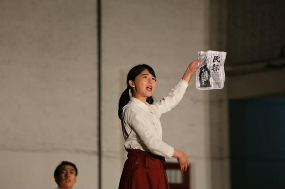 “聚光灯亮,佝偻老妪,步履蹒跚,白发苍苍。曾经的美丽少女如今已长发如霜,声音已经没有了过去的动听,却依旧掩盖不了'我'对你魂牵梦萦的思念。”独具一格的独白开场,瞬间吸引了在场观众的注意。话剧正式开始,主人公志徳等学生代表围绕着是否该通过游行来对政府枪杀学生的行为做出抗议展开了激烈的讨论。最后,大家决定通过话剧的形式传达出他们对政府行为的不满。