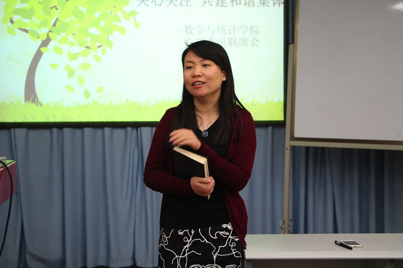 会议开始由刘宇晖老师主讲。他首先指出,数学学科本身的难度在一定程度上会给学生带来压力,由此强调了每个班级心理文化建设的必要性。他的讲话主要有三点内容:一是确定心理委员工作例会日;二是提醒心理委员工作需要有条理性,要求所有委员理清各自班级的情况,并在每次会议前做好相关的准备;三是在一层一级的工作机制的考量下,要求心理委员在一周内拟定每个寝室的心理联络人名单,以形成完善的工作模式。